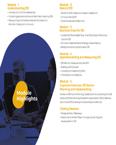 • Comprehensive understanding of fundamental principles and significance of DEI