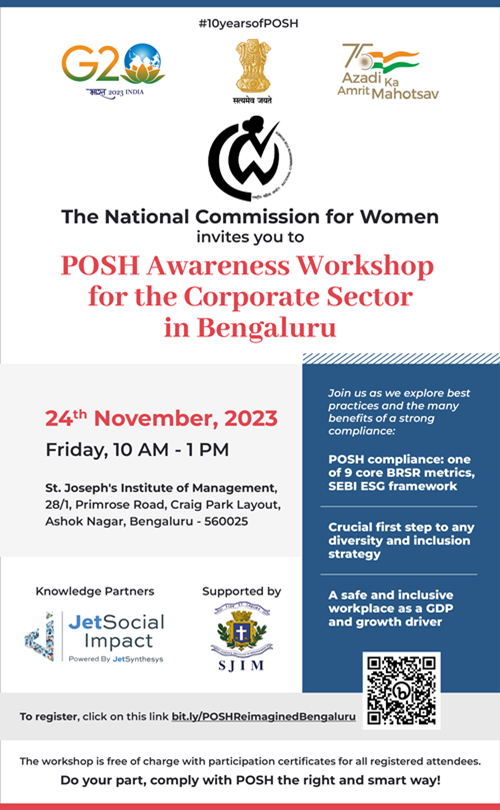 1. Invites you to the workshop ‘POSH reimagined: awareness & best practices beyond compliance’ on Friday, 24th Nov, 2023, 10.00 AM to 01.00 PM at St. Joseph’s Institute of Management, (SJIM) Bengaluru.