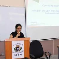Name of the speaker : Ms. Vijaya Ghosh Topic of the guest lecture : SJIM Students Gain Strategic Insights in “AI Essentials for Business” Session Date: 07 July 2025