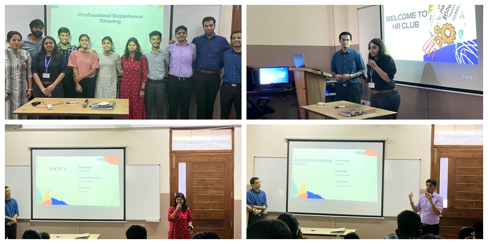 The Human Resources (HR) Club at SJIM focuses on accelerating the application of knowledge gained in classrooms. Recently, the HR Club conducted a “professional experience sharing” activity for PGDM Year I students who will be entering the corporate world soon for summer internship. The event was organized by student coordinators from Year I (Ms. Shreya J, Ms. Annapurna L, Mr. Rohit Philip Alexander, Ms. Sonal) and Year II (Ms. Anya Mary Samson) of PGDM program with the guidance of the faculty coordinator, Dr. Shehla Malik.